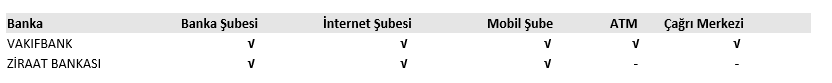 Vakıfbank ve Ziraat Bankası'nın aşağıda belirtilen kanallarından ilgili siparişinize ait borcunuzu sorgulayarak ödeme yapabilirsiniz. Aşağıdaki kanallardan yapılan ödemeler 1 iş günü sonrasında sistemimize yansımaktadır.
